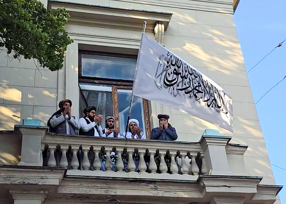 탈레반이 채택한 국기가 등장한 모스크바 주재 아프간 대사관. 타스=연합뉴스 |
