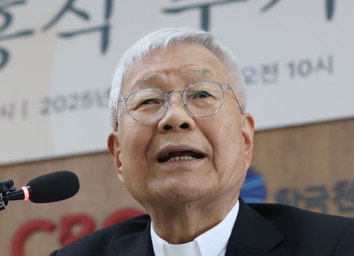 교황청 성직자부 장관 유흥식 추기경이 지난 3일 서울 광진구 한국천주교주교회의에서 기자간담회를 하고 있다. [사진 = 연합뉴스] |