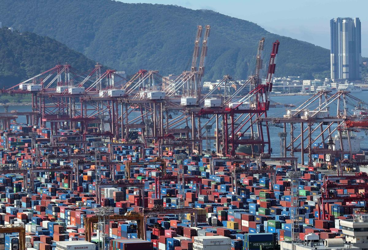 1일 부산 남구 신선대부두 야적장에 수출입 컨테이너가 쌓여 있다. 뉴시스. |