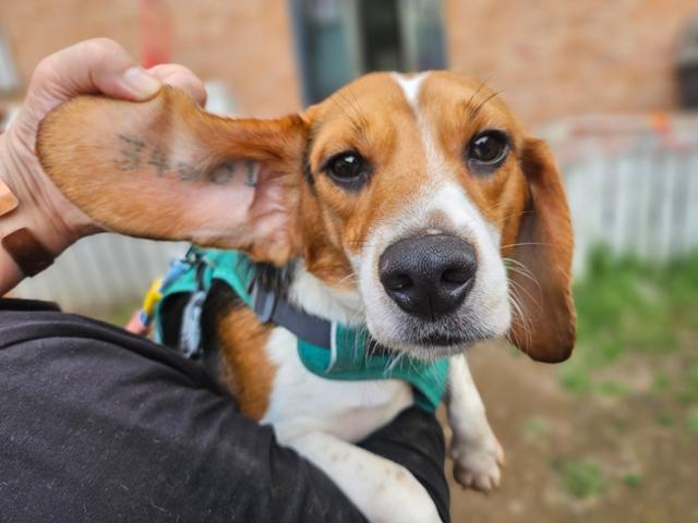 한 제약회사로부터 기증받은 실험 비글의 귀에 번호가 새겨져 있다. 비글구조네트워크 제공 |