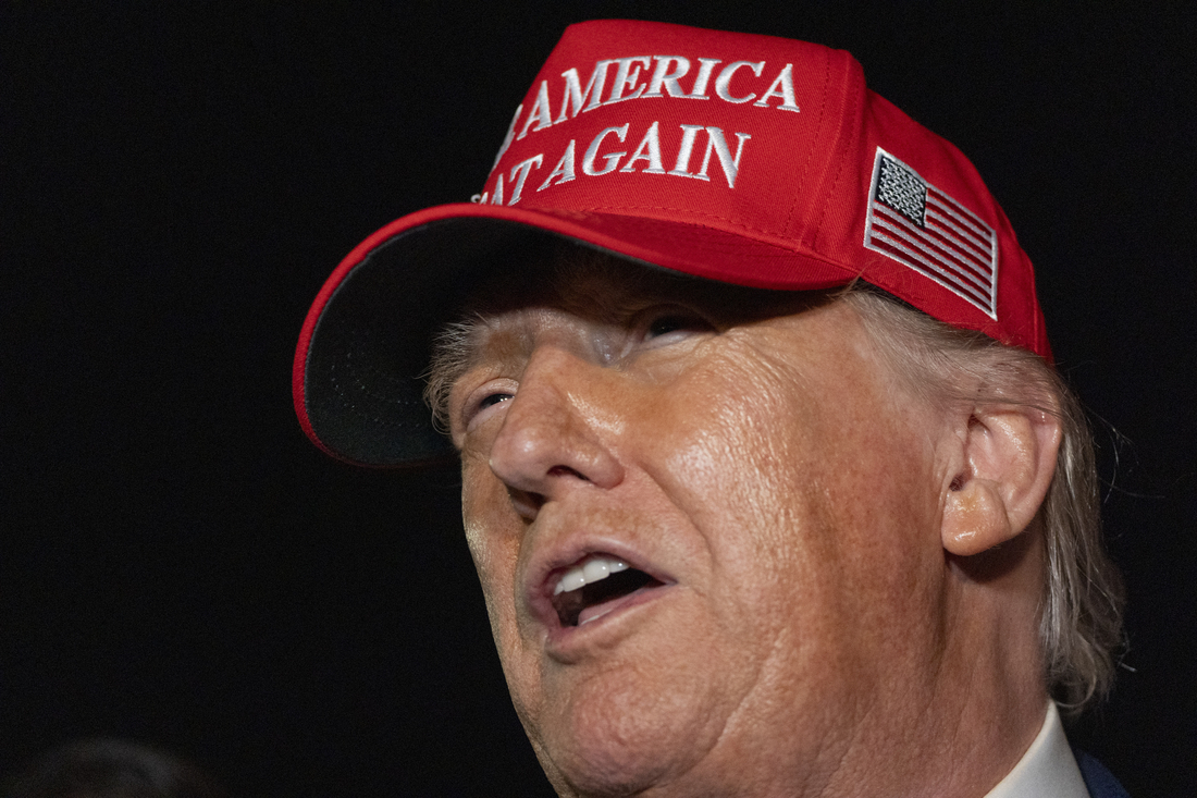 4일(현지시간) 도널드 트럼프 미국 대통령이 워싱턴 인근 앤드루스 합동기지에서 연셜하고 있다. AP연합뉴스 |