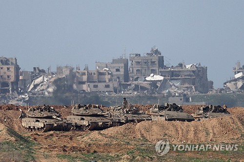 가자지구 국경에 주둔 중인 이스라엘 탱크 |