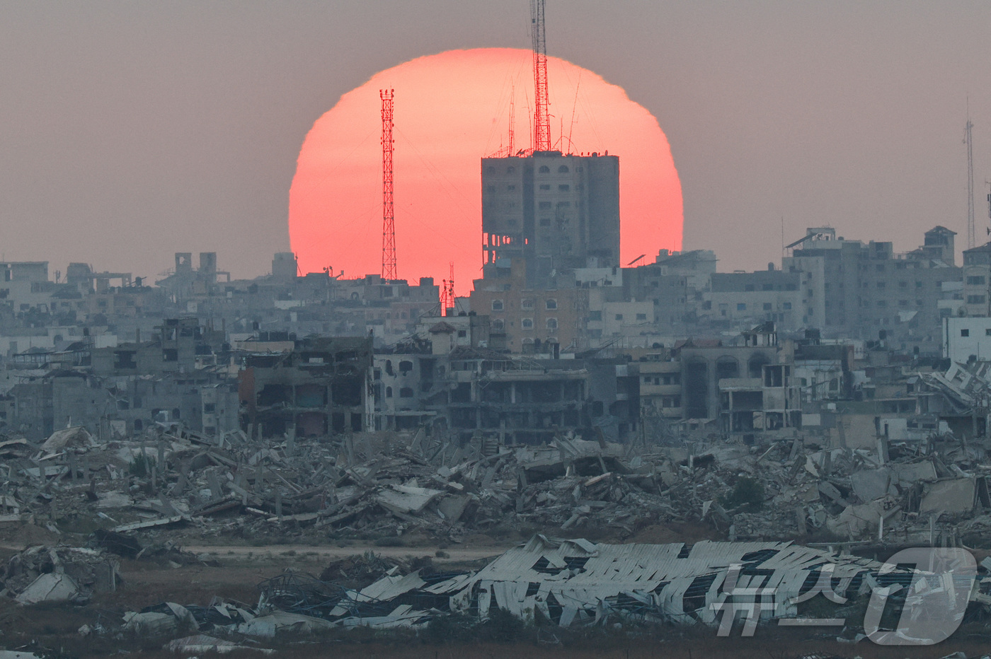 이스라엘 공습으로 폐허가 된 가자지구 너머로 해가 지고 있다. 2025.07.02. ⓒ 로이터=뉴스1 ⓒ News1 이지예 객원기자 |