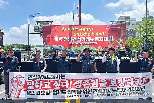 이어 "할부금을 내지 못해 건설장비를 빼앗길 처지에 놓인 조합원도 있다"며 "연식 제한으로 수억 원의 건설기계 교체를 강요당하거나 장시간 중노동을 강제하는 건설사들의 갑질 문화도 여전하다"고 주장했다.