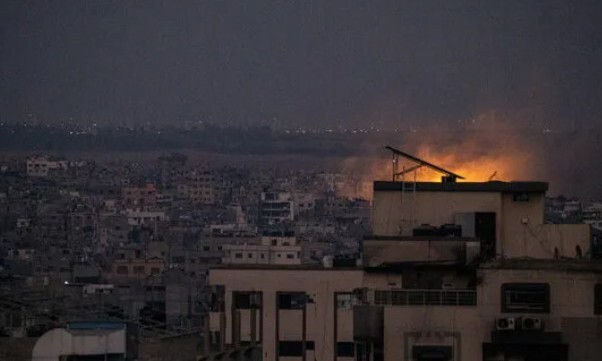 지난 3일(현지시각) 이스라엘이 가자지구 북부 가자시티 동쪽 알 셰재야 지역을 공습해 건물이 불타고 있다. 가자시티/EPA 연합뉴스 |