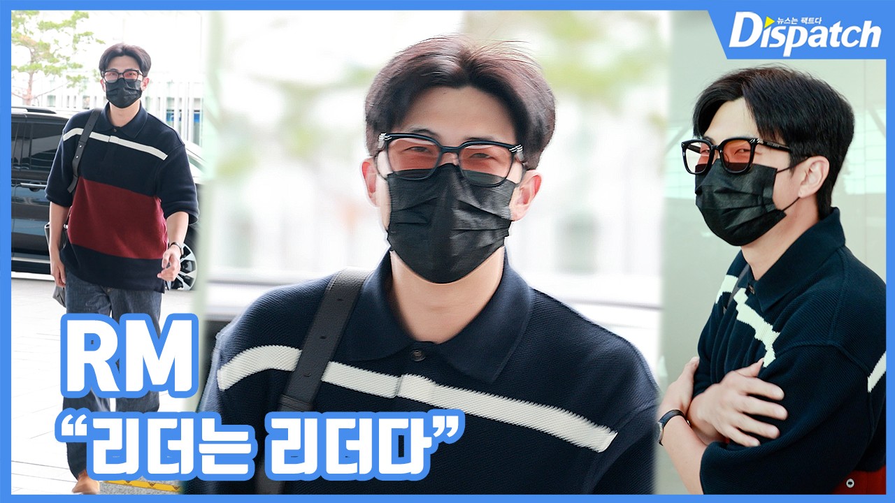 이날 RM은 전역 후 출국길에 처음 취재진을 맞이하며 훈훈한 모습을 뽐냈다. 안경과 마스크로도 가릴 수 없는 리더의 클래스를 보여줬다.