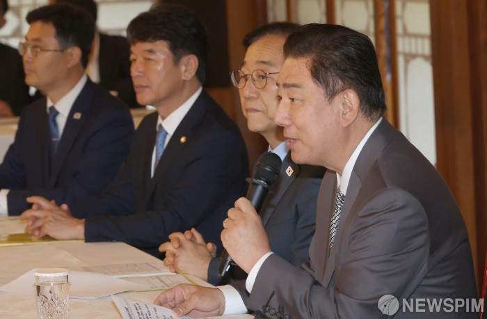 [서울=뉴스핌] 양윤모 기자 = 6일 서울 삼총동 총리공관에서 열린 제1차 고위당정협의회에서 김병기 더불머민주당 대표 직무대행 겸 원내대표가 발언하고 있다. [공동취재] 2025.07.06 yym58@newspim.com