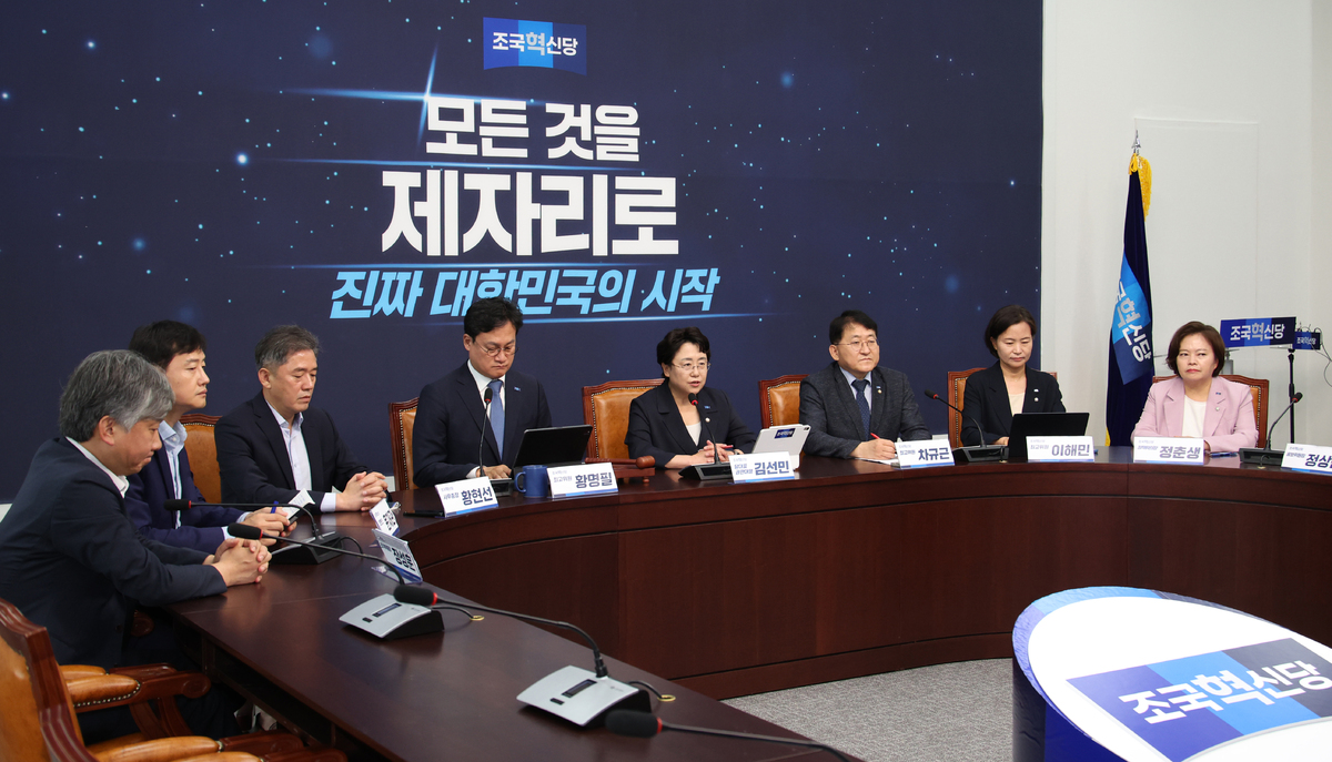 김선민 조국혁신당 당대표 권한대행이 7일 서울 여의도 국회에서 열린 최고위원회의에서 발언하고 있다. 뉴시스 |