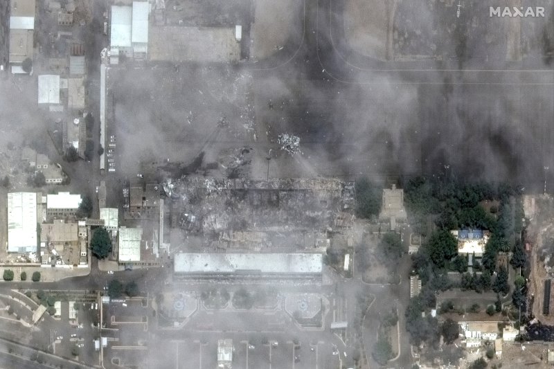 예멘 사나 국제공항의 터미널과 관제탑이 지난 5월 7일 이스라엘의 보복 공습으로 파괴된 광경. 이스라엘군은 후티 반군의 근거지인 예멘 북부 호데이다 항구와 수도 사나 등을 폭격했고 후티군은 이스라엘 텔아비브의 벤구리온 국제공항을 미사일로 타격하며 보복전을 계속 중이다. 맥사 테크놀로지스가 제공한 위성 사진이다. AP 뉴시스 |