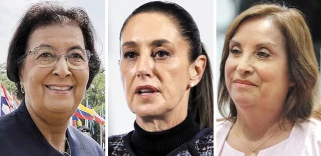 왼쪽부터 예니퍼르 헤이를링스시몬스 수리남 대통령 당선인, 클라우디아 셰인바움 멕시코 대통령, 디나 볼루아르테 페루 대통령./AFP·EPA 연합뉴스 |