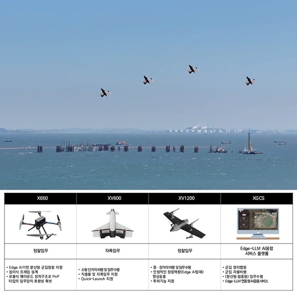 1단계에서는 국산반도체 업체인 ㈜모빌린트와 협력하여 NPU 기반의 Edge AI 반도체를 드론에 탑재, 영상처리, 비행제어, 임무수행 및 AI 연동을 통합한 All-In-One 솔루션의 기술개발을 완료하였고, 소형 LLM모델 탑재를 통해 자율임무수행형 군집드론 기술의 완성을 목표로 기술을 고도화하고 있다.