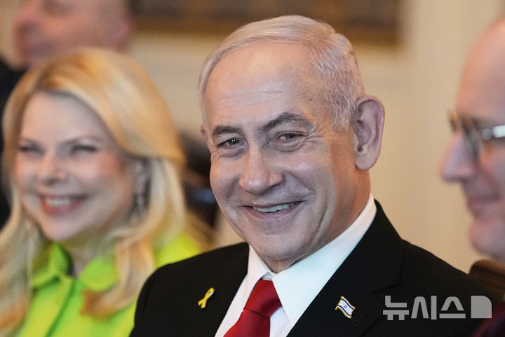 [워싱턴=AP/뉴시스] 베냐민 네타냐후 이스라엘 총리가 7일(현지 시간) 워싱턴DC 백악관에서 열린 도널드 트럼프 미국 대통령과 만찬에서 미소 짓고 있다. 2025.07.08. |
