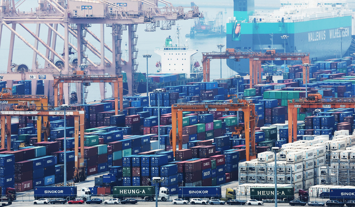 7일 경기도 평택항에 컨테이너가 쌓여 있는 모습. 2025.7.7 xanadu@yna.co.kr (끝) |