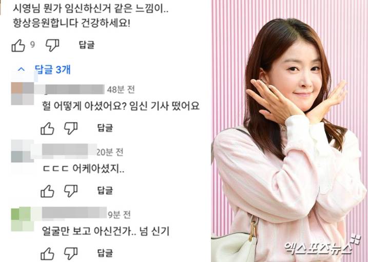 이시영의 이혼이 알려진 상황이었기에 임신일 것이라고는 대부분 예상하지 못했던 상황. 이시영의 임신 고백 하루 전인 7일 한 네티즌은 "시영님 뭔가 임신한 거 같은 느낌이.. 항상 응원합니다 건강하세요!"라는 댓글을 달았다. 임신 사실이 알려진 현재 많은 네티즌들은 이러한 성지글에 놀라움을 표하며 "헐 어떻게 아셨어요? 기사 떴어요", "어떻게 아셨지", "얼굴만 보고 아신 건가 너무 신기" 등의 댓글을 달고 있다.