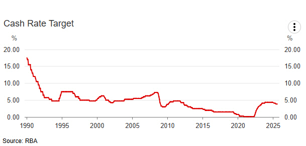 호주 기준금리 추이. 7월 3.85%. |