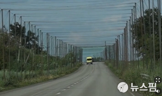 고기잡이용 그물을 설치한 우크라이나 도로의 모습. [뉴욕타임스 캡처] |
