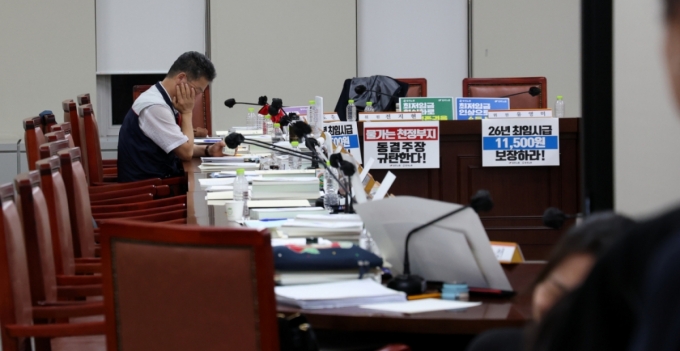 8일 세종시 정부세종청사 고용노동부에서 열린 최저임금위원회 제10차 전원회의에서 8차 수정안으로 각각 시간당 1만900원과 1만180원을 제시후 정회하며 노사가 ·막판 협상을 이어가고 있다. 2025.7.8/뉴스1 Copyright (C) 뉴스1. All rights reserved. 무단 전재 및 재배포, AI학습 이용 금지. /사진=뉴스1 |