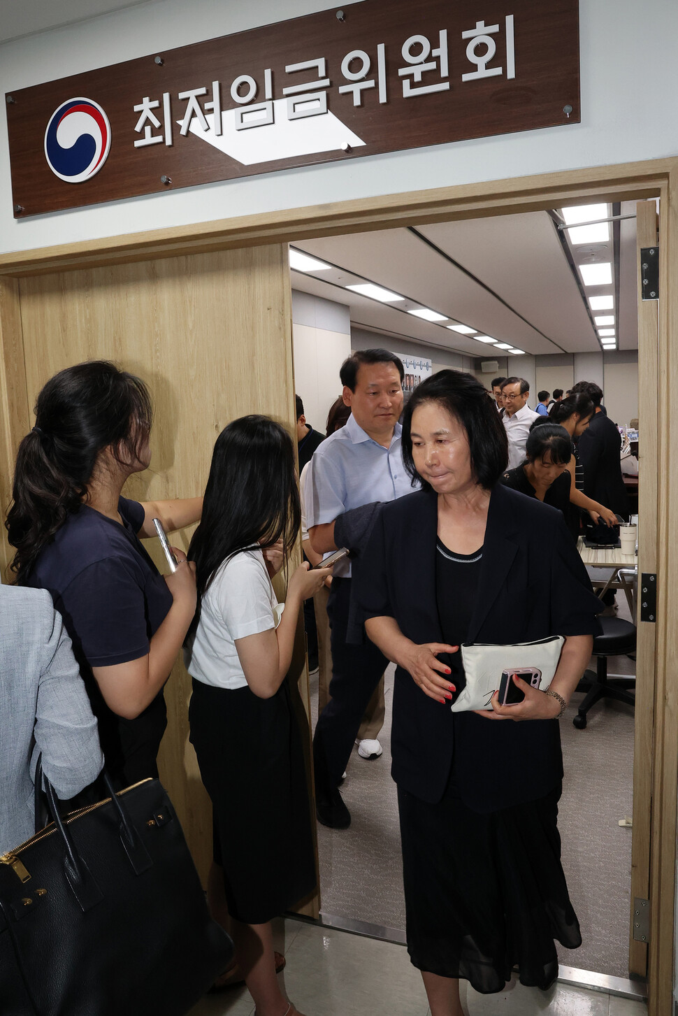 최저임금위원회의 8일 11차 회의 뒤 노사 대표 위원들이 회의장을 나오고 있다. 연합뉴스 |