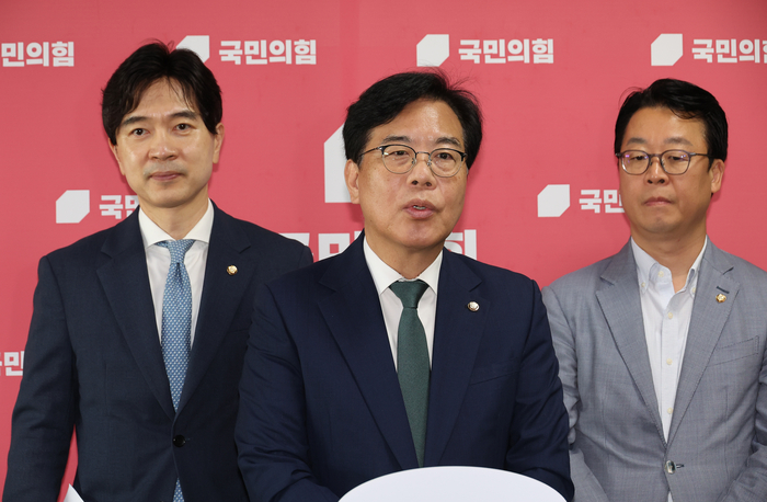 국민의힘 송언석 비상대책위원장 겸 원내대표가 9일 서울 여의도 국회에서 비공개 비대위 회의 후 백브리핑을 하고 있다.(사진=연합뉴스) |