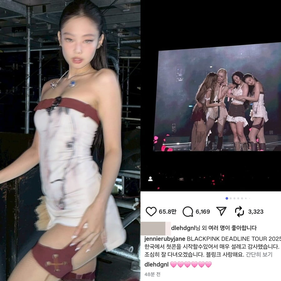 제니는 9일 자신의 인스타그램에 "BLACKPINK DEADLINE TOUR 2025 한국에서 첫콘을 시작할 수 있어서 매우 설레고 감사했습니다. 조심히 잘 다녀오겠습니다. 블링크 사랑해요"라는 글과 함께 여러 장의 사진과 영상들을 게재했다.