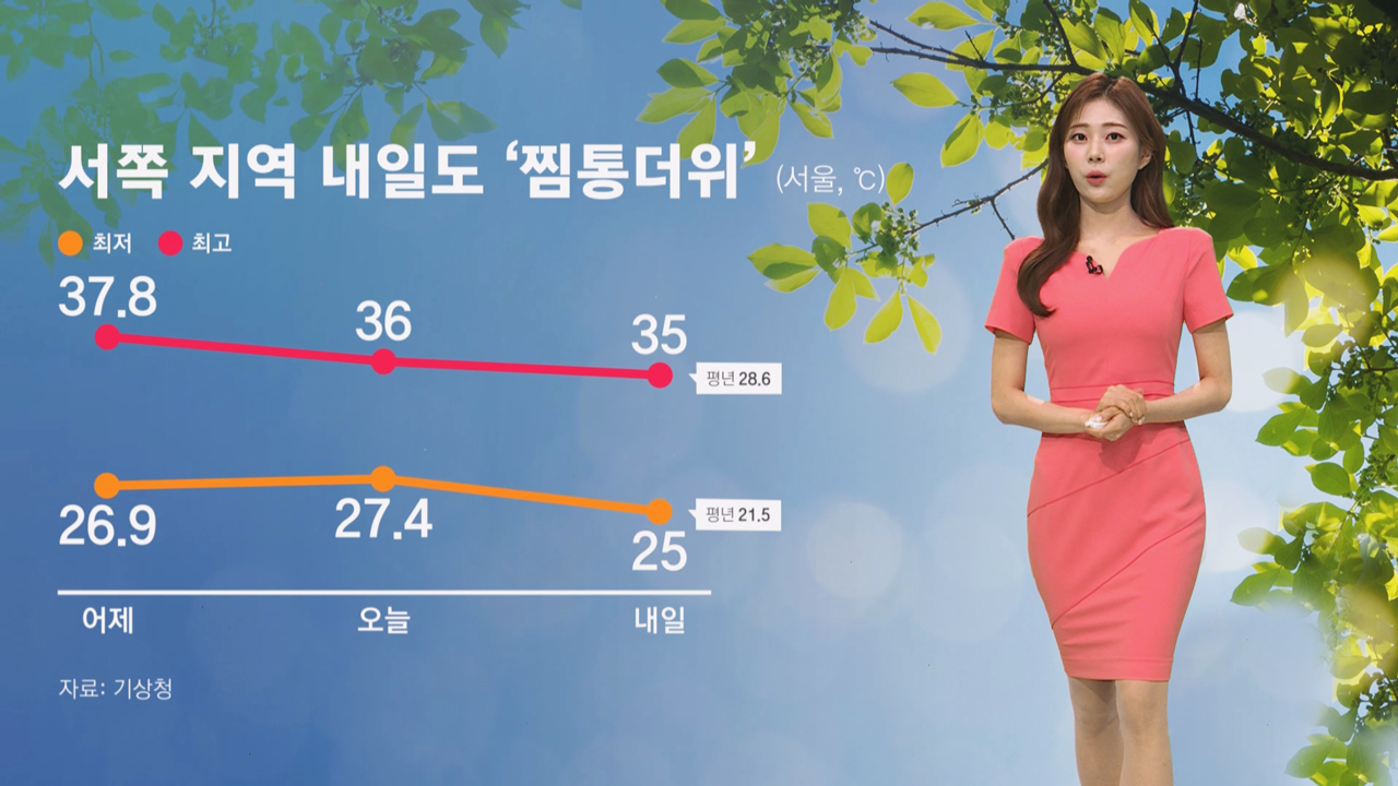 야외 활동은 엄두가 안날 정도로 서쪽 지역의 폭염이 극심합니다. 기록적 더위를 보였던 어제에 이어 오늘(9일)도 서울의 낮 기온이 36도까지 오르며 무척이나 더웠는데요. 기온이 조금씩 내려가고 있긴 하지만, 내일도 35도를 보이며 찜통더위는 계속되겠습니다.