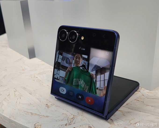 9일(현지시간) 삼성전자가 미국 뉴욕 브루클린에서 연 '갤럭시 언팩 2025' 행사에서 갤럭시Z 플립7과 나눈 대화다. 플립7을 반으로 접은 '플렉스 모드'에서 카메라에 옷을 비추며 질의하자 제미나이는 카메라 렌즈로 바라보듯 자연스럽게 답변한다.