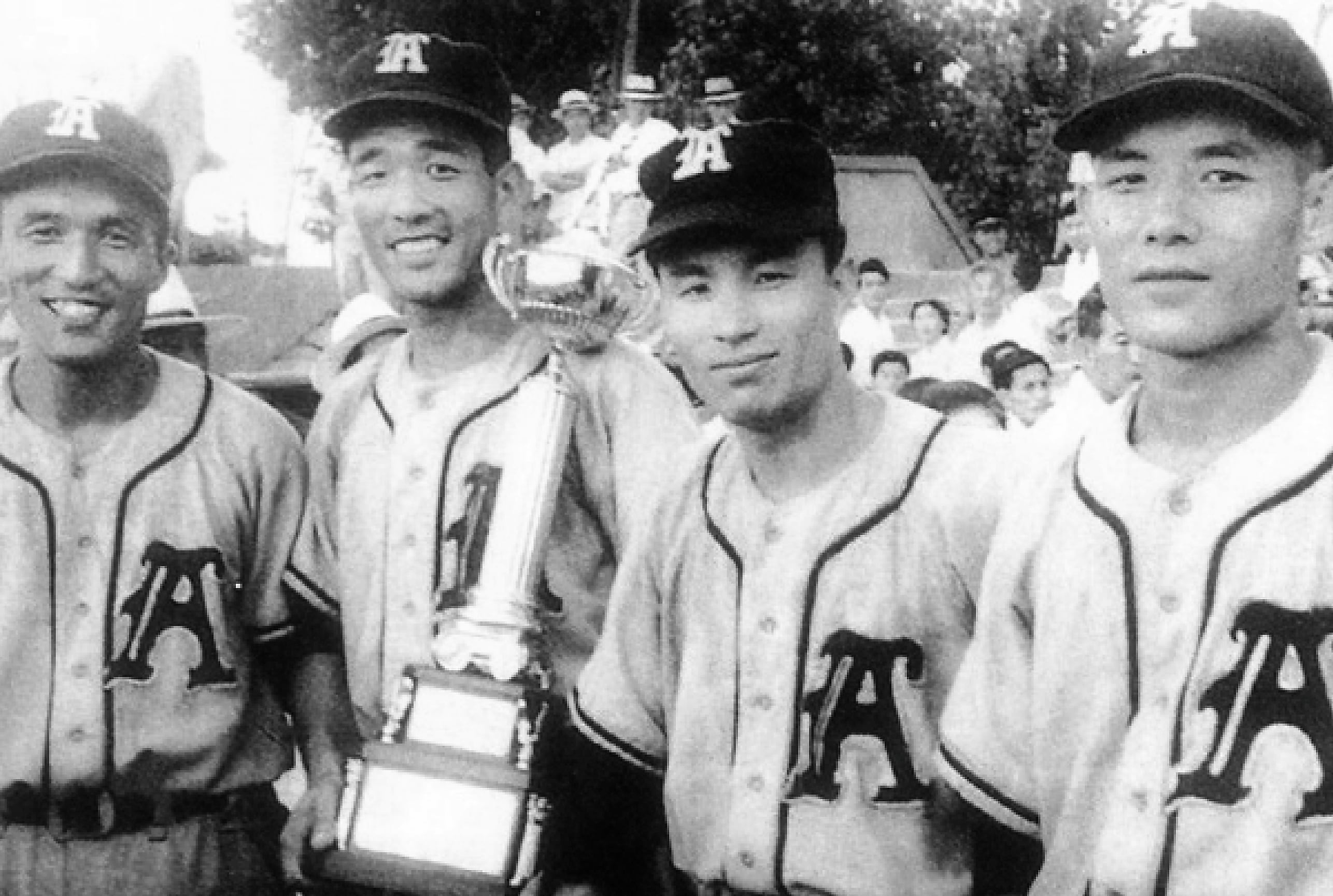 1946년 청룡기 1회 대회에 출전한 배재중 김정환(왼쪽부터), 동산중 박현식, 경남중 장태영, 광주서중 김양중. /조선일보DB |