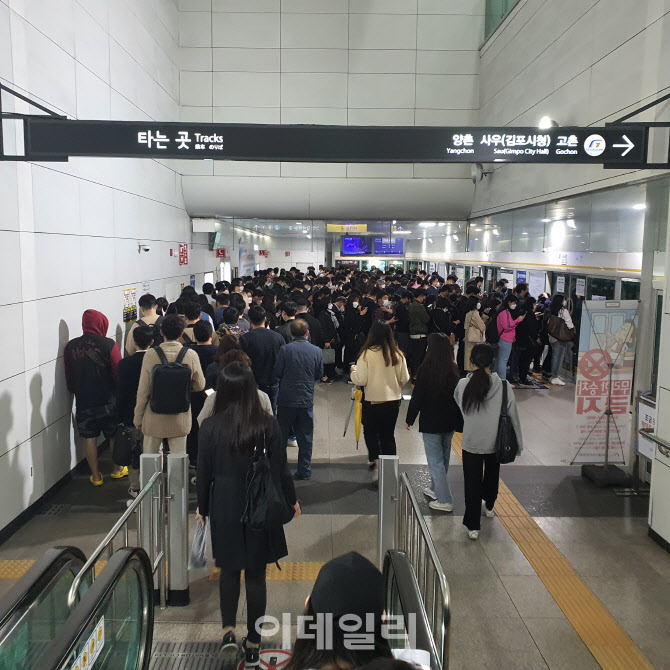 출퇴근 혼잡도로 악명 높은 김포 골드라인(사진=정두리 기자) |