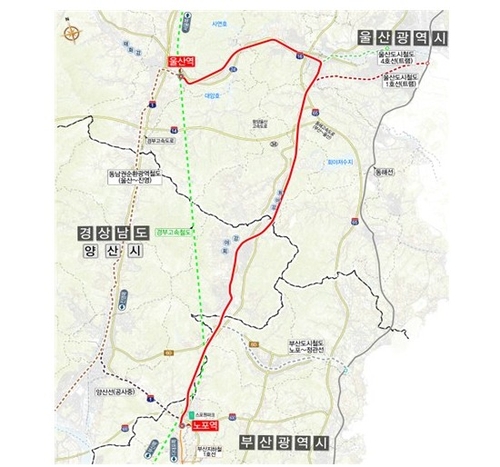부산∼경남 양산∼울산 광역철도 노선도 |