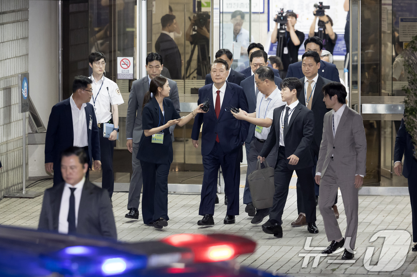 12·3 비상계엄과 관련해 특검 수사를 받는 윤석열 전 대통령이 9일 밤 서울중앙지법에서 두 번째 구속 전 피의자심문(영장실질심사)을 마친 뒤 대기장소인 서울구치소로 이동하고 있다. 2025.7.9/뉴스1 ⓒ News1 사진공동취재단 |
