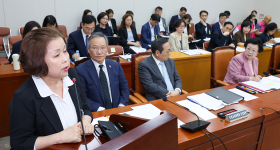 손효숙 리박스쿨 대표가 10일 서울 여의도 국회 교육위원회에서 열린 리박스쿨 청문회에 출석해 의원 질의에 답하고 있다. 뉴스1 |