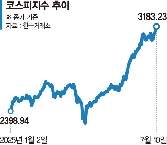 글로벌 인공지능(AI) 반도체 시장 톱픽(최선호주)인 엔비디아가 전 세계 기업 중 최초로 장중 시가총액 4조달러를 돌파하자 국내 증시에도 훈풍이 불었다. 엔비디아에 높은 비중으로 투자하고 있는 국내 상장지수펀드(ETF)들이 불기둥을 세웠고, SK하이닉스 등 반도체주가 강세를 보이면서 코스피도 연고점을 재차 돌파했다. 비트코인 역시 사상 최고가를 경신하자 우리기술투자 등 관련 종목들이 덩달아 오르며 코스닥도 상승 마감했다. 이에 따라 국내 증시(코스피, 코스닥, 코넥스) 시총도 사상 처음으로 3000조원을 넘어섰다.