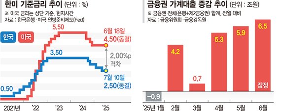 향후 서울의 주간 아파트 가격 상승세가 8월까지 눈에 띄게 둔화될 경우 한은의 금리인하 시점은 다음 달이 될 가능성이 크다. 소비·수출 개선세에 추경 효과까지 유입된다 해도 올해 성장률이 1% 안팎에 그치고, 실제 국내총생산(GDP)과 잠재 GDP의 격차인 GDP 갭도 상당히 커지는 등 기준금리 추가 인하 필요성이 확대됐기 때문이다.