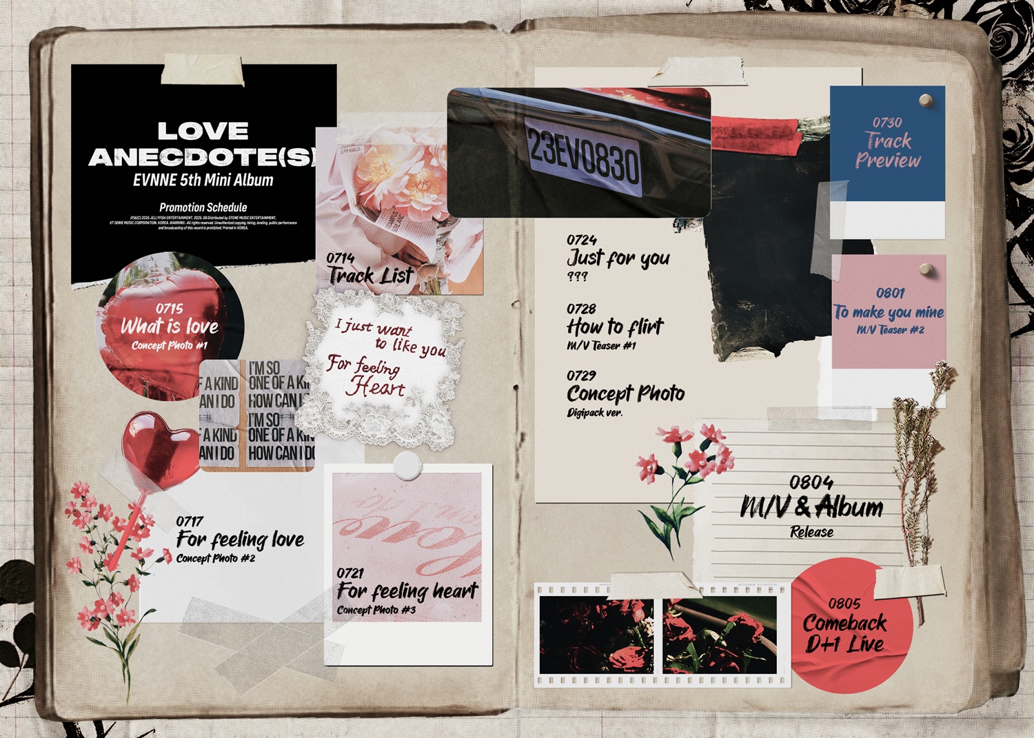 공개된 이미지는 다이어리 꾸미기 감성을 정조준해 빈티지함과 감각적인 트렌디함을 넘나드는 분위기를 완성하여 MZ세대의 취향을 제대로 저격했다. 또 일자별로 'What is love', 'For feeling love', 'Just for you', 'To make you mine' 등 다양한 메시지가 눈길을 끌어 앨범에 대한 호기심을 한껏 키웠다.