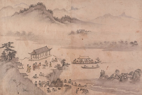 한강가 제천정에서 벌어진 중국 사신의 송별회를 그린 '무진추한강음전도' |