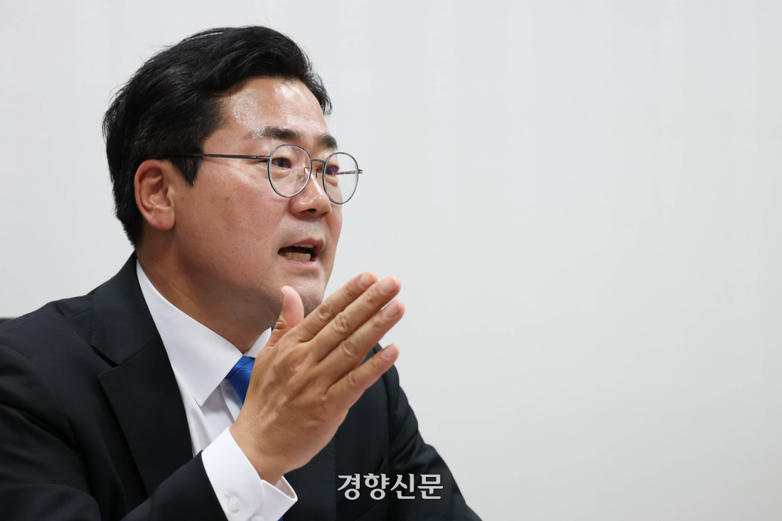 박찬대 더불어민주당 의원이 지난달 24일 국회 의원회관에서 경향신문과 인터뷰를 하고 있다. 성동훈 기자 |