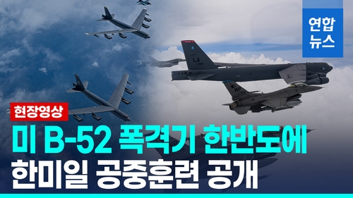 (서울=연합뉴스) 한미일 3국은 11일 제주도 남방 공해상에서 미국 B-52H 전략폭격기가 참가한 가운데 공중 훈련을 실시했다고 국방부가 밝혔습니다.