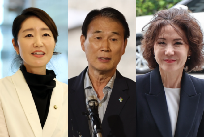 강선우(왼쪽) 여성가족부 장관 후보자·권오을(가운데) 국가보훈부 장관 후보자·이진숙(오른쪽) 부총리 겸 교육부 장관 후보자. 연합뉴스 |