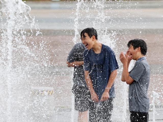 무더위가 이어진 2일 경기 고양시 일산호수공원 분수대에서 학생들이 물놀이를 하며 더위를 식히고 있다. 뉴스1 |