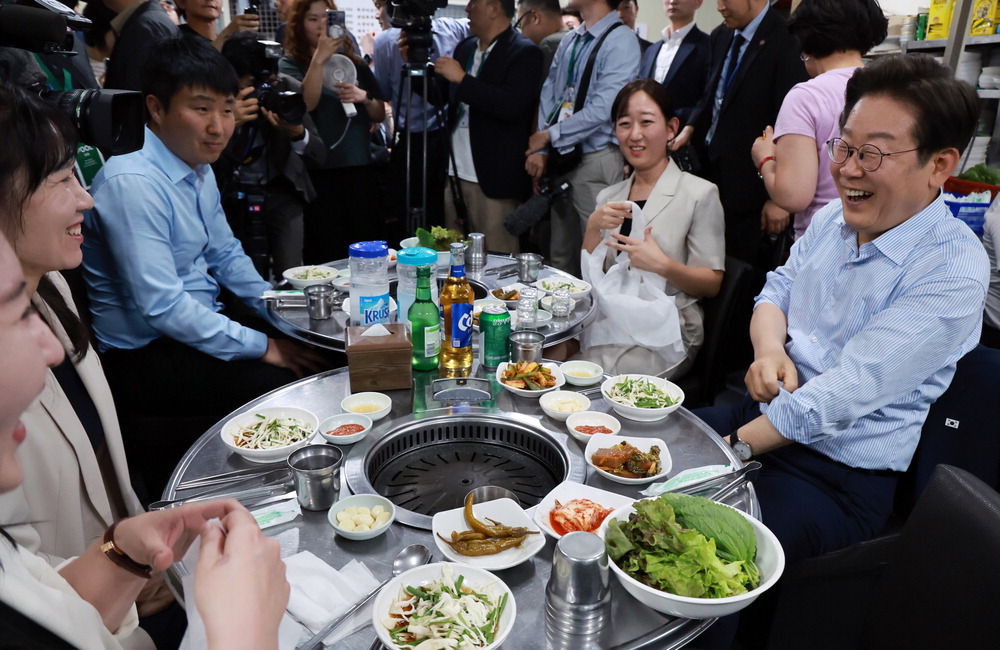 이재명 대통령은 11일 저녁 서울 광화문의 한 식당에서 대통령실 직원들과 저녁식사를 하며 "소비 진작을 위해 저부터 외식을 많이 해야 한다"고 말했다.