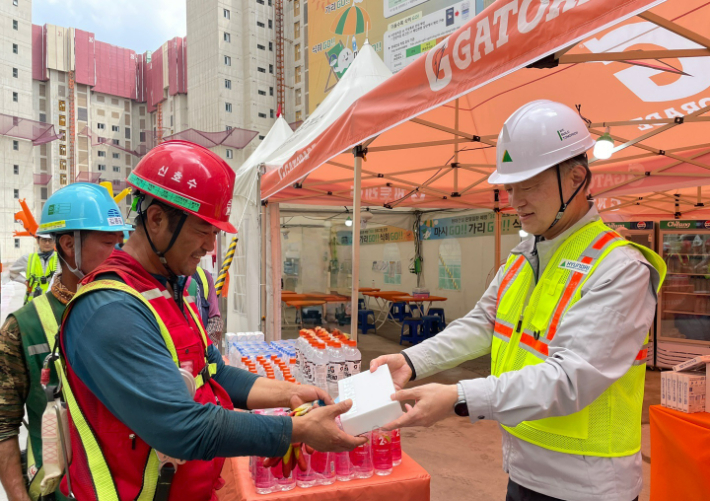 건설사들은 폭염에 지친 작업자들을 위해 이동식 에어컨, 대형 선풍기 등 냉방시설을 총동원하고 있지만 역시나 더위에 지친 작업자들의 사기를 올리는 데 가장 효과적인 것은 시원한 음료와 먹을거리들이다. 한화 건설부문은 지난 2일부터 전국 현장 작업자들에게 'Summer Safety 푸드트럭'을 보내 팥빙수를 제공하고 있다. 51개 현장에 약 10,000인분의 간식이 제공됐다. 심지어 롯데칠성음료와 업무협약(MOU)을 체결하고 현장 작업자들이 섭취하기 편리하게 만들어진 이온음료 분말과 생수 등을 납품받기로 했다.