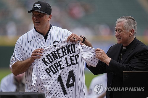 (서울=연합뉴스) 이대호 기자 = 최초의 미국인 출신 교황이자, 최초의 미국 메이저리그(MLB) 팬 출신 교황으로 알려진 레오 14세가 20년 전 자신에게 잊을 수 없는 추억을 선사했던 선수에게 유니폼을 선물했다.