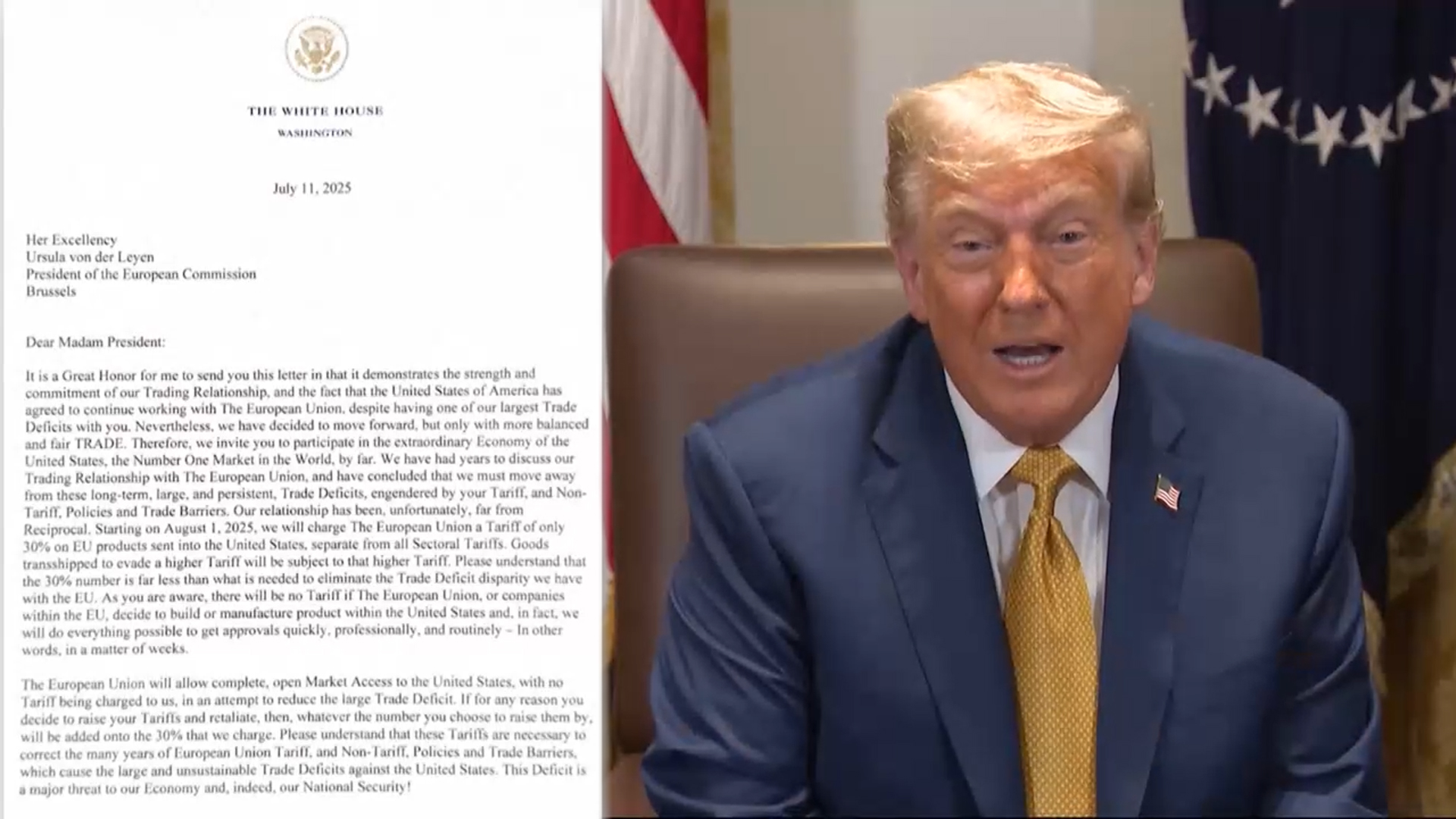 트럼프 대통령은 8월 1일부터 유럽연합과 멕시코에 각각 30%의 상호관세를 부과하겠다며 "무역적자는 우리 경제, 그리고 사실은 우리의 국가안보에 중대한 위협"이라고 주장했습니다.