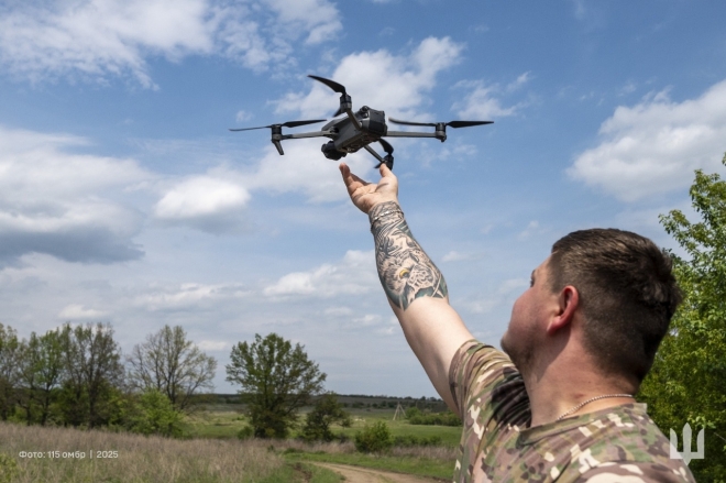 우크라이나군의 한 드론 조종사가 일인칭시점(FPV) 드론을 띄우고 있다. 출처=우크라이나군 제115독립기계화여단 페이스북 |