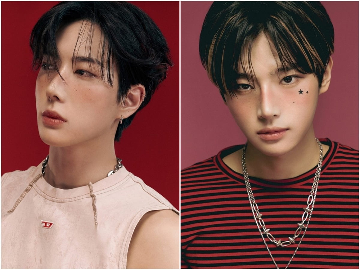 먼저 강렬한 레드 배경 속 종우는 찢어진 와이드 팬츠와 슬리브리스 상의로 거침없는 에너지를 발산하며 시선을 사로잡았다. 카리스마 넘치는 눈빛과 탄탄한 피지컬이 강한 인상을 남겼다. 옐로우 배경의 제이창은 빈티지 스트라이프 니트에 디테일한 뱃지와 액세서리로 개성을 더했고, 부드러운 눈빛으로 감각적인 무드를 완성했다.