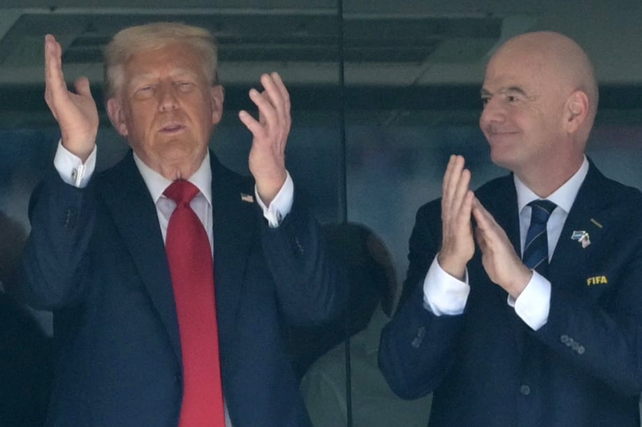 트럼프는 이날 멜라니아 여사를 비롯해 팸 본디 법무장관, 숀 더피 교통장관, 크리스티 놈 국토안보부 장관 등 내각 인사들을 대거 대동했다. 미 프로미식축구(NFL) 리그 전설의 쿼터백인 톰 브래디, 폭스뉴스 등을 소유한 언론 재벌 루퍼트 머독 등의 모습도 카메라에 잡혔다. 눈길을 끈 것은 VIP 스위트룸에서 90분 경기 내내 웃는 얼굴로 트럼프 옆자리를 지킨 인판티노 회장인데, 그는 내년도 월드컵의 성공적 개최를 위해 트럼프와의 우호적 관계 구축에 사활을 걸었다는 평가를 받고 있다. 올해 2월 영국 더 타임스와의 인터뷰에서 “월드컵이 성공하기 위해서는 트럼프와 긴밀한 관계를 맺는 것이 아주 중요하다”며 “트럼프의 지지야말로 2026 월드컵 성공의 핵심 요소”라고 했다. 공교롭게도 트럼프 취임 후 미국은 공동 개최국이자 이웃 국가인 캐나다·멕시코와 관세, 불법 이민 등을 이유로 갈등을 빚고 있는 상황이다.
