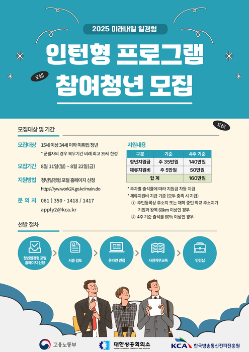 미래내일 일경험은 고용노동부가 주관하는 사업으로 미취업 청년에게 다양한 직무 체험 기회를 제공하고 실무 경험을 통해 희망 직종에 안정적으로 취업할 수 있도록 지원하는 프로그램이다. KCA는 지난해에 이어 올해에도 방송·미디어 분야 전문 인프라를 활용해 실무 중심의 사전직무교육과 맞춤형 일경험을 제공해 미래 인재 양성에 주력란다는 목표다.