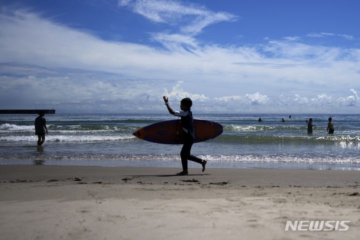[이와키=AP/뉴시스] 일본 도쿄전력이 14일 후쿠시마 제1원자력발전소 오염수(일본 정부 명칭 처리수) 13차 해양 방류를 시작했다고 후쿠시마 TV와 산케이신문이 보도했다. 사진은 지난 2023년 8월 26일 일본 후쿠시마현 이와키시에 있는 요쓰쿠라 해수욕장에서 사람들이 서핑을 하는 모습. 2025.07.14. |