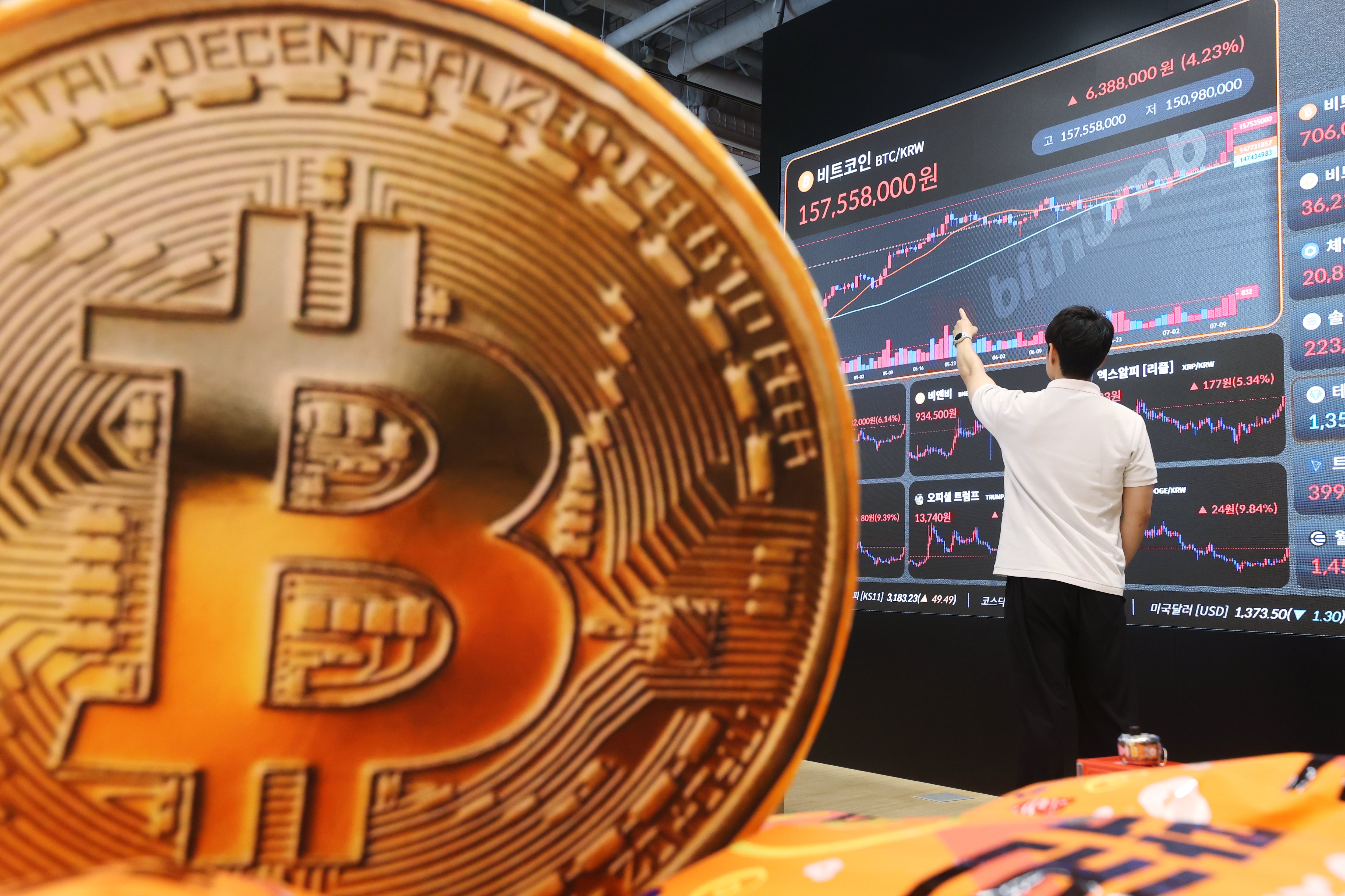 비트코인이 연일 사상 최고가를 갈아치우며 고공 행진을 이어가고 있는 지난 11일 서울 서초구 빗썸라운지 강남본점에 가상화폐 시세가 표시돼있다./연합뉴스 |