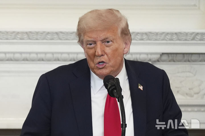 [워싱턴=AP/뉴시스] 14일(현지 시간) 뉴욕타임스에 따르면 도널드 트럼프 대통령이 지난주 두 자릿수 관세율을 담은 서한을 각 국에 통보한 가운데, 예고대로 8월1일부터 관세가 적용된다면 소비자와 기업 모두 심각한 타격을 입을 전망이다. 사진은 도널드 트럼프 미국 대통령이 14일(현지 시간) 백악관 스테이트다이닝룸에서 열린 종교국 오찬행사에서 연설하고 있는 모습. 2025.07.15. |